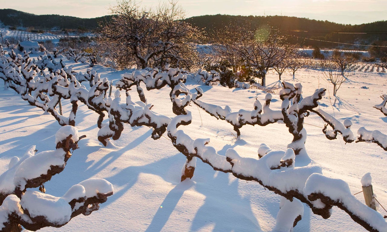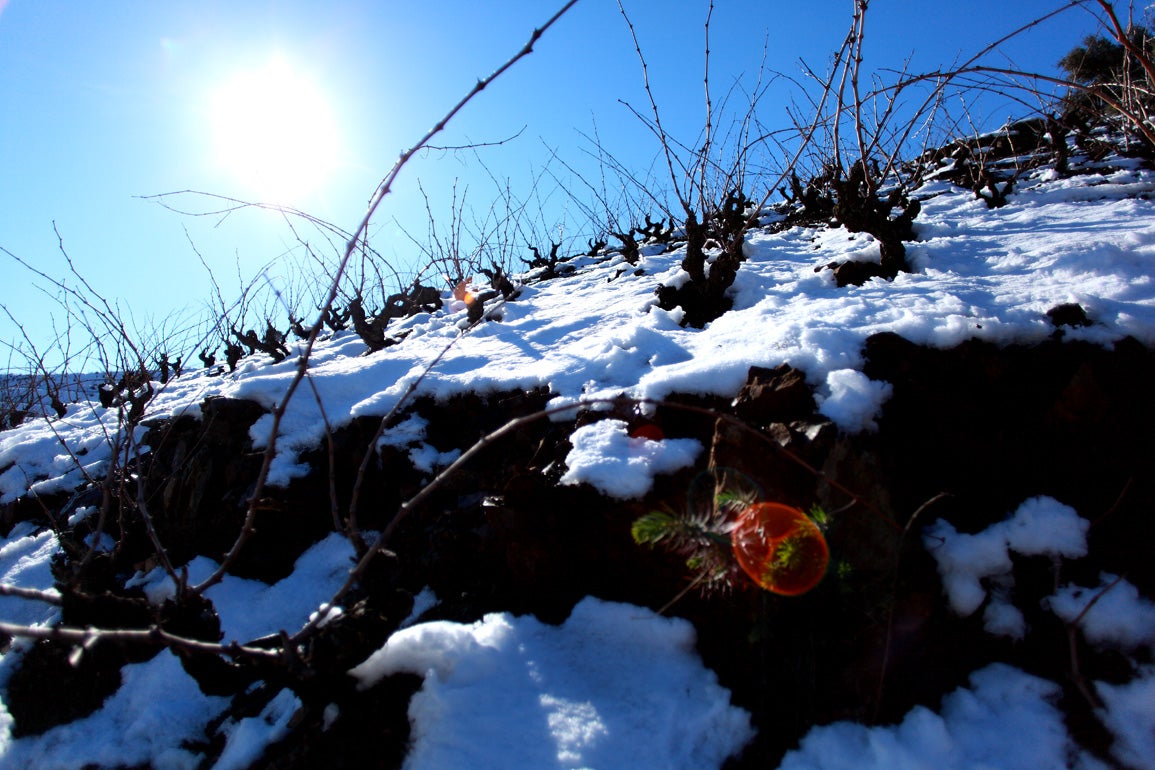 I l’hivern, també deixa algunes postals emblanquinades, vinyes cobertes de neu.