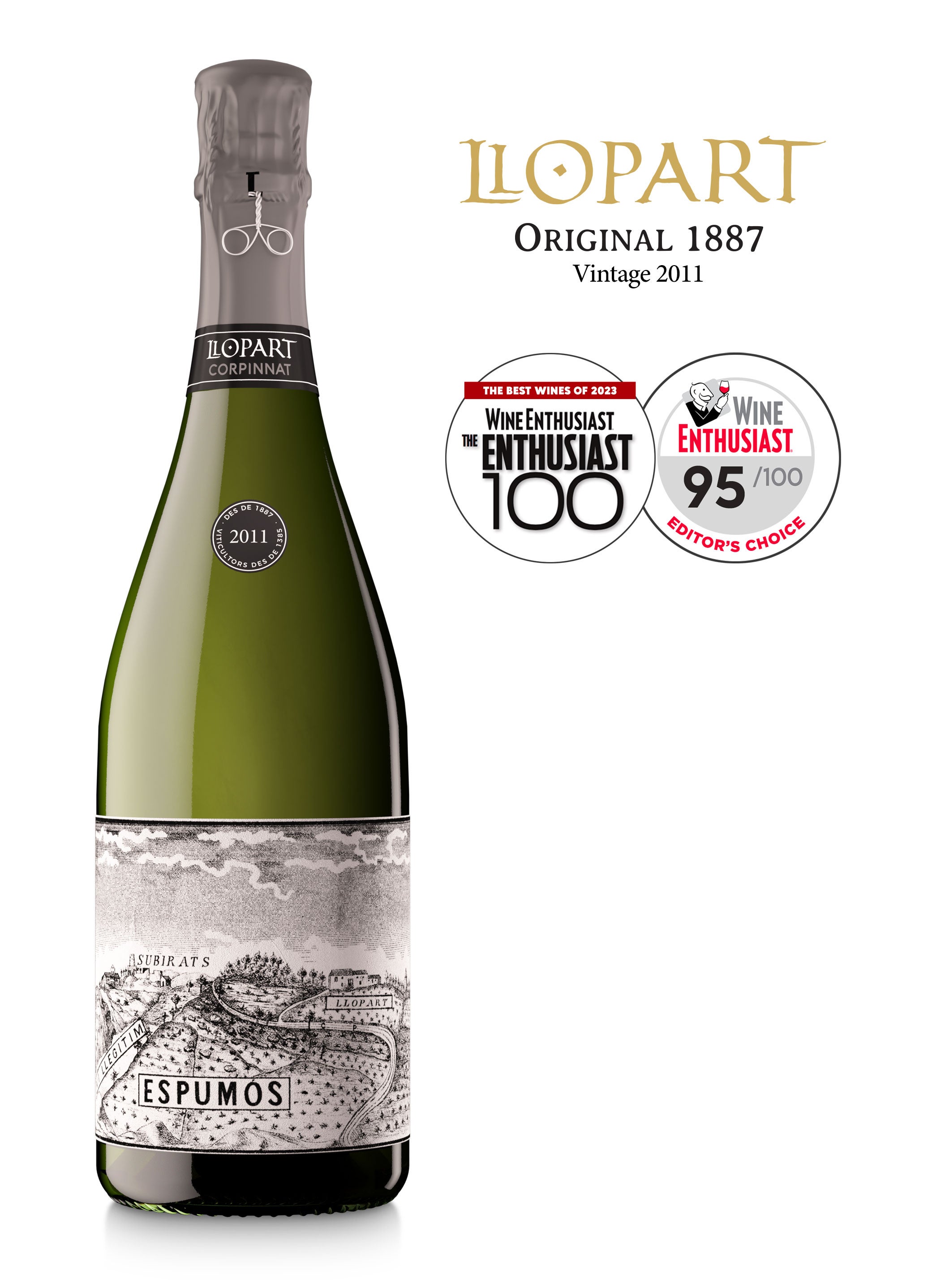 Llopart Original es un homenaje a los orígenes y raíces profundas de Llopart en la elaboración de vino espumosos en Subirats, Penedès. La primera añada al mercado fue la de 2006, y conmemoraba el 125.º cumpleaños del primer producto que embotelló la familia. Este Corpinnat, nacido de viñas viejas de Las Flandes -un enclave formado por un anfiteatro de cepas elevado sobre paredes verticales de roca calcárea de la época del mioceno, hace millones de años- es una cupaje de montónega, xarel·lo y macabeo y sale al mercado con una edición numerada y muy limitada y con una particularidad que lo singulariza: mantiene la réplica exacta de la etiqueta original del vino del año 1887.