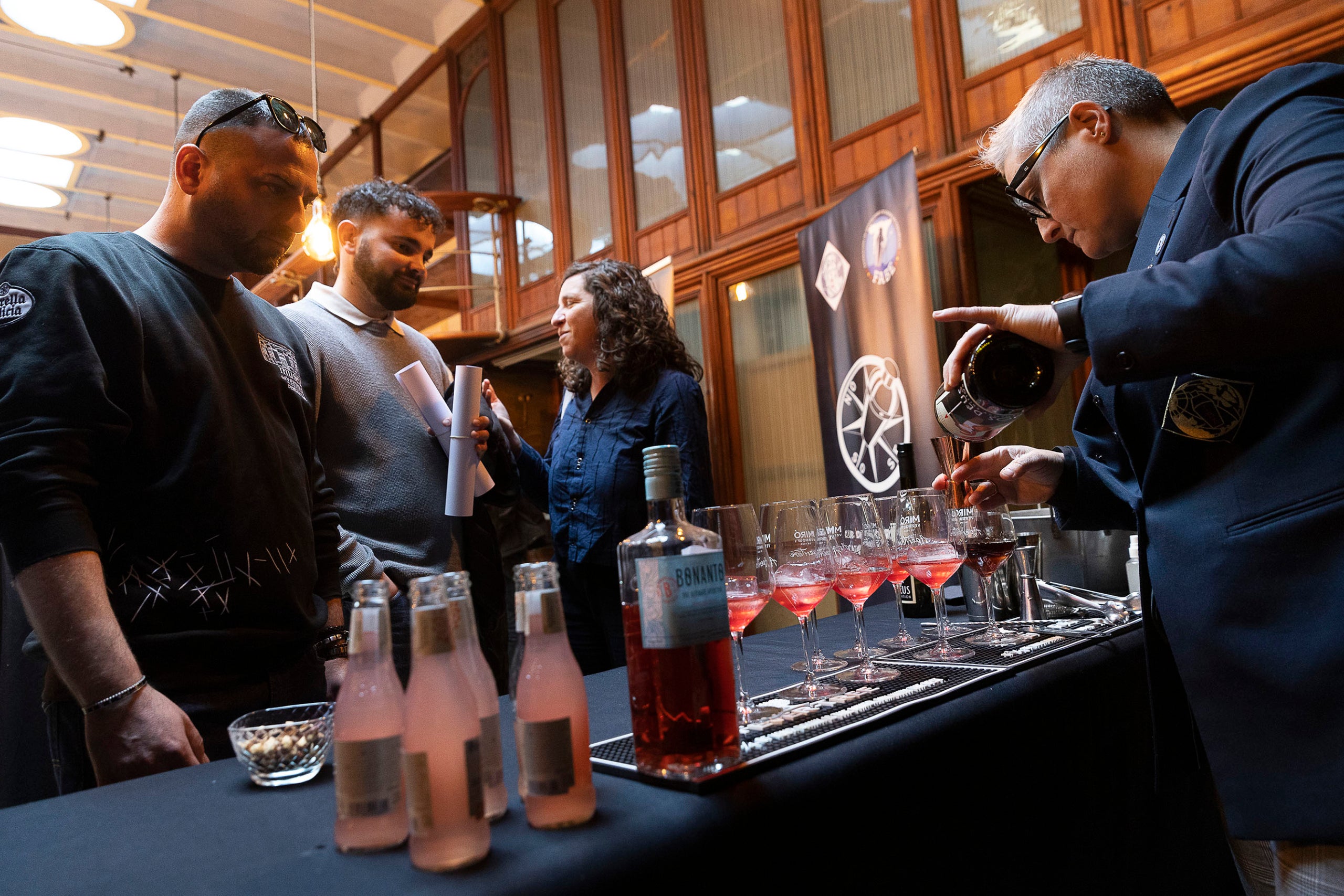 Mariona Vilanova, presidenta del Club de Bartenders de Catalunya preparant còctels durant l'acte de lliurament dels Premis Vinari dels Millors Vermuts Catalans.