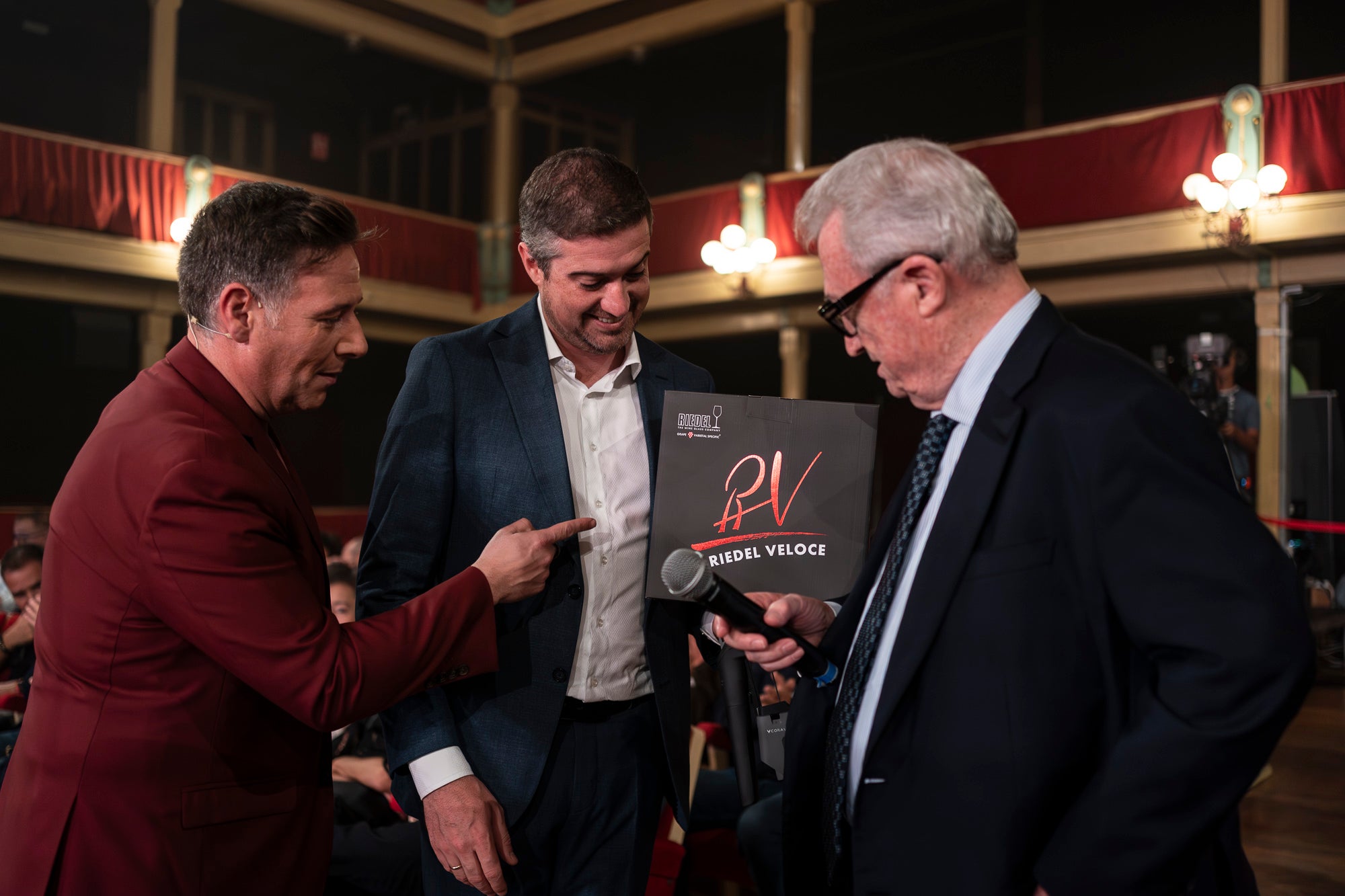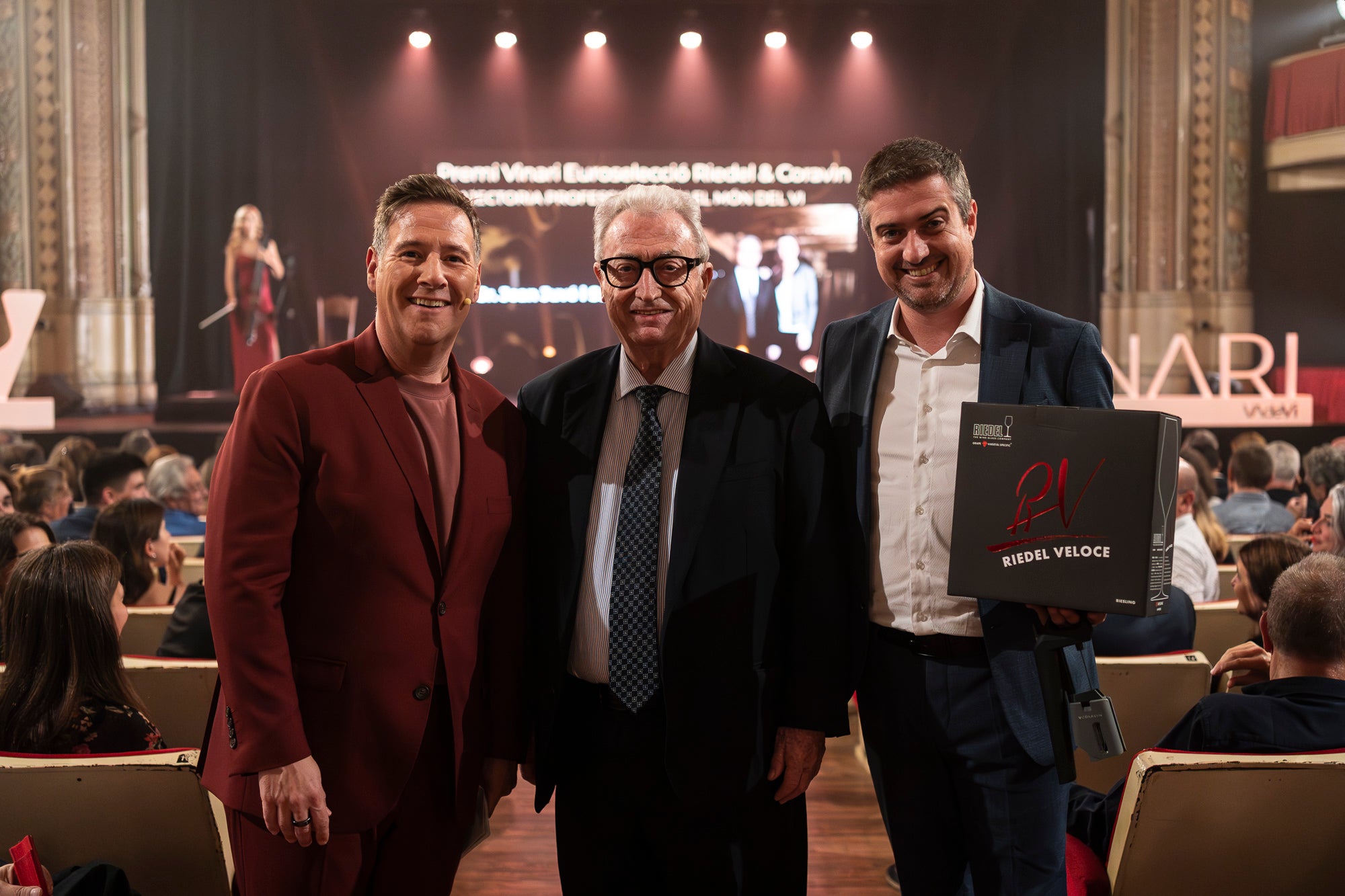 Carlos Latre, presentador dels Vinari; Bruno Xavier, d'Euroselecció Riedel i Joan Juvé i Santacana / Mireia Comas