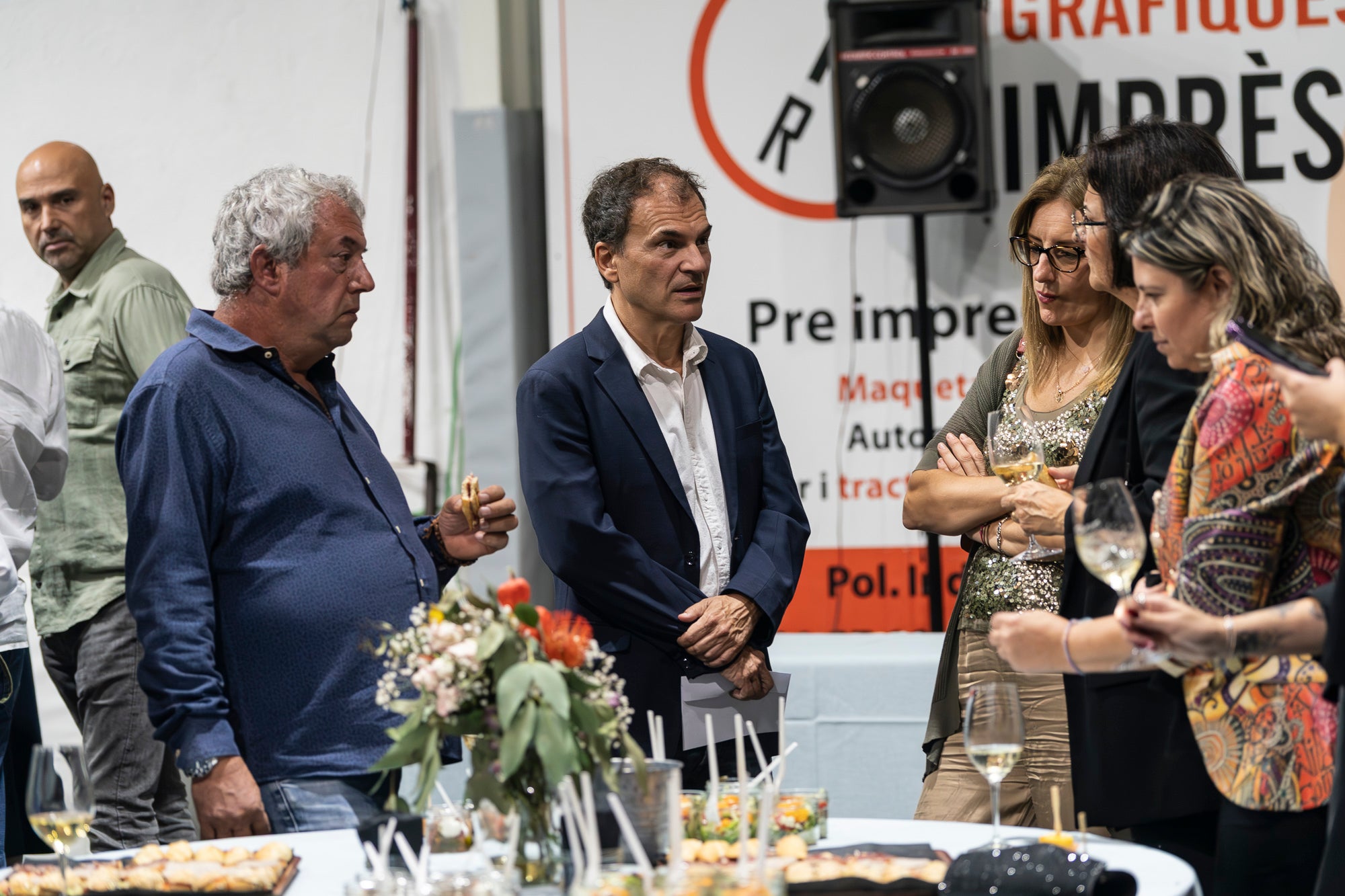 Premi Vinari Gràfiques Varies a la Millor Etiqueta, Ethèric Blanc de Noirs, Vinyes d’Olivardots (DO Empordà) i Josep Varias, director general de Gràfiques Varies, durant la gala dels Premis Vinari 2025 / Mireia Comas