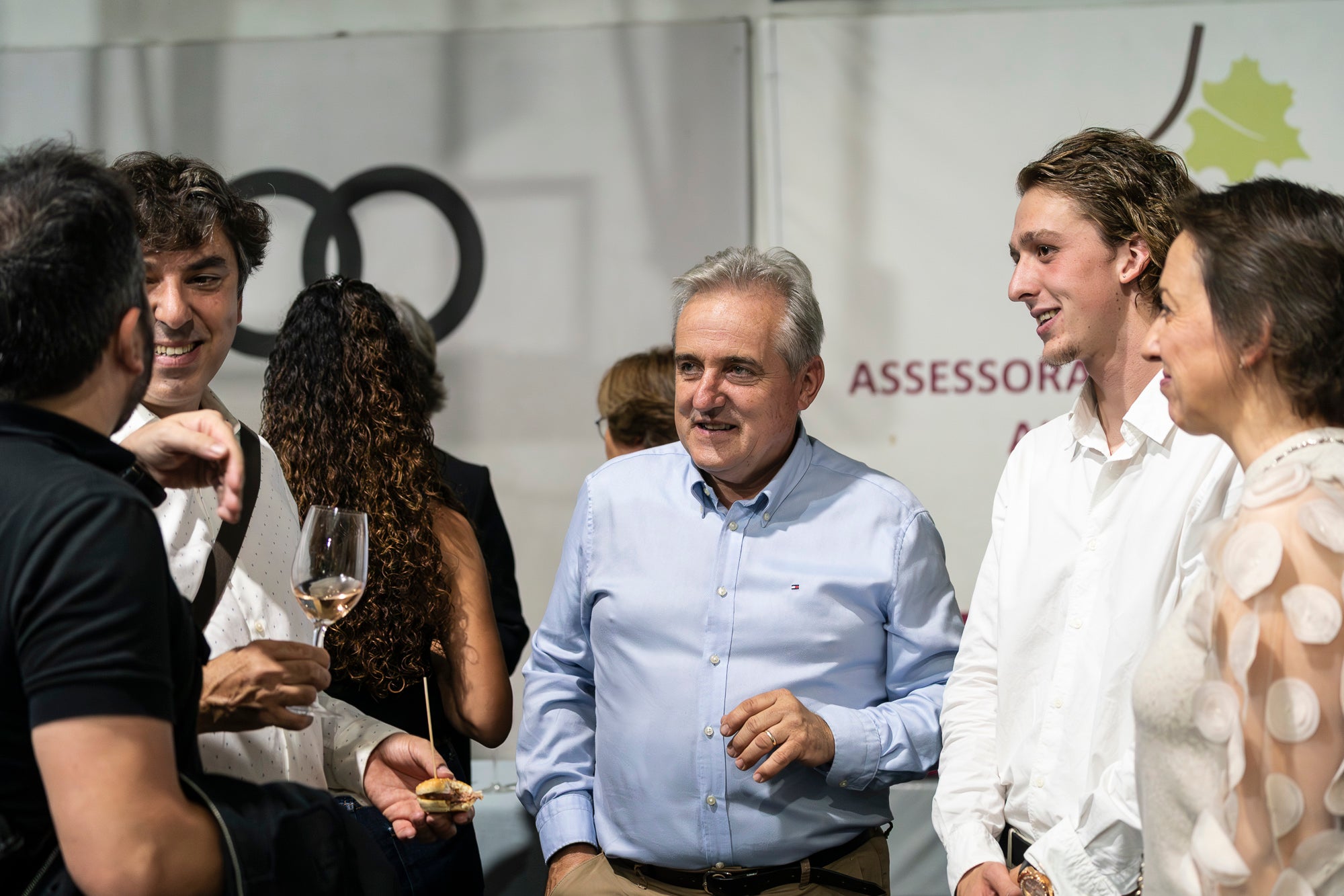 Raimon Olivella, president del Vinseum de Vilafranca del Penedès, juntament amb els guanyadors del Vinari Gran Or al Millor Vi Escumós Blanc Reserva, Raventós Rosell Heretat 2022, Raventós Rosell (DO Cava) / Mireia Comas