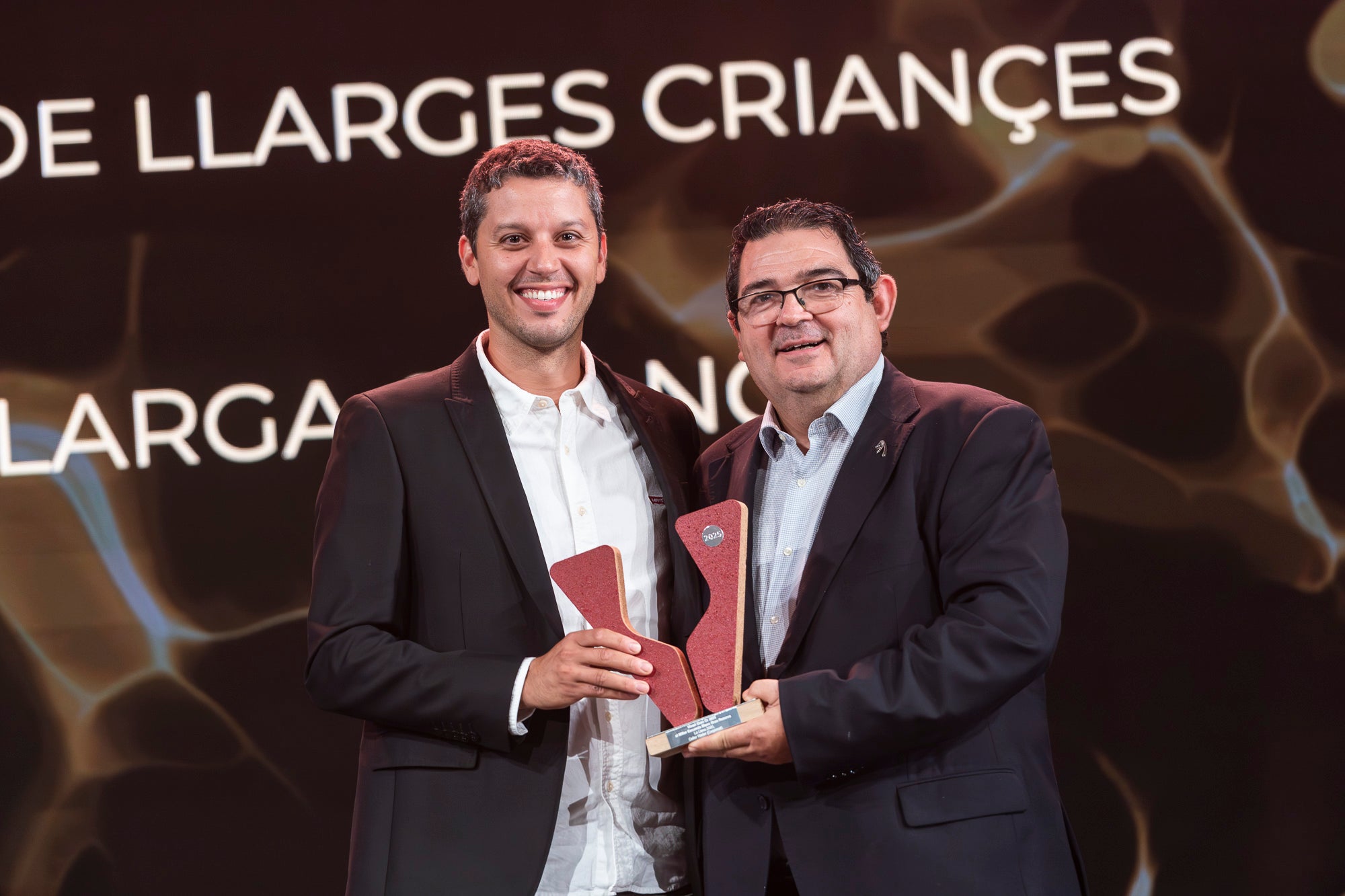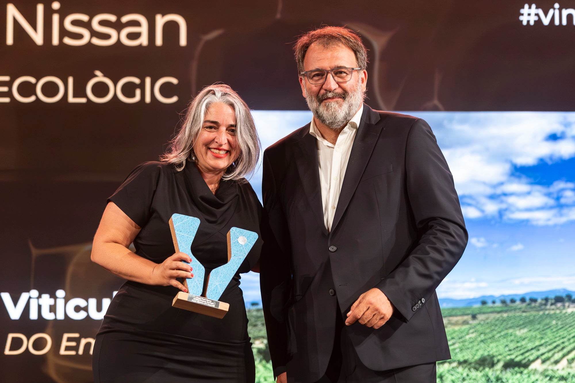 Premi Vinari Nissan al Millor Projecte Ecològic, per Espelt Viticultors i Joan Nicolás, propietari de la concessió Nissan Nikko Center, durant la gala dels Premis Vinari 2025 / Mireia Comas