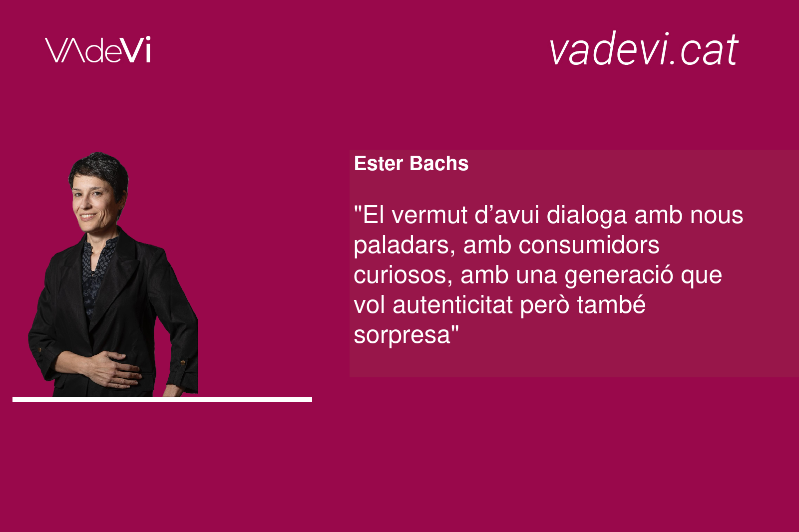 Com a directora dels Premis Vinari dels Vermuts Catalans, veig cada any com aquesta beguda -tan nostra- viu una nova joventut. Hem sabut preservar la tradició, aquella recepta que parla d’herbes, d’arrels i de paciència. Però també hem entès que estimar una tradició és fer-la evolucionar.